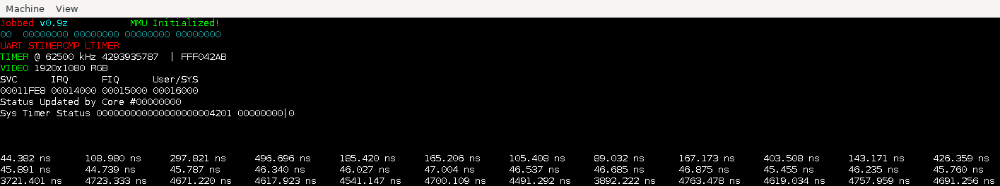 Jobbed in QEMU running the tests with the Cycle Counter